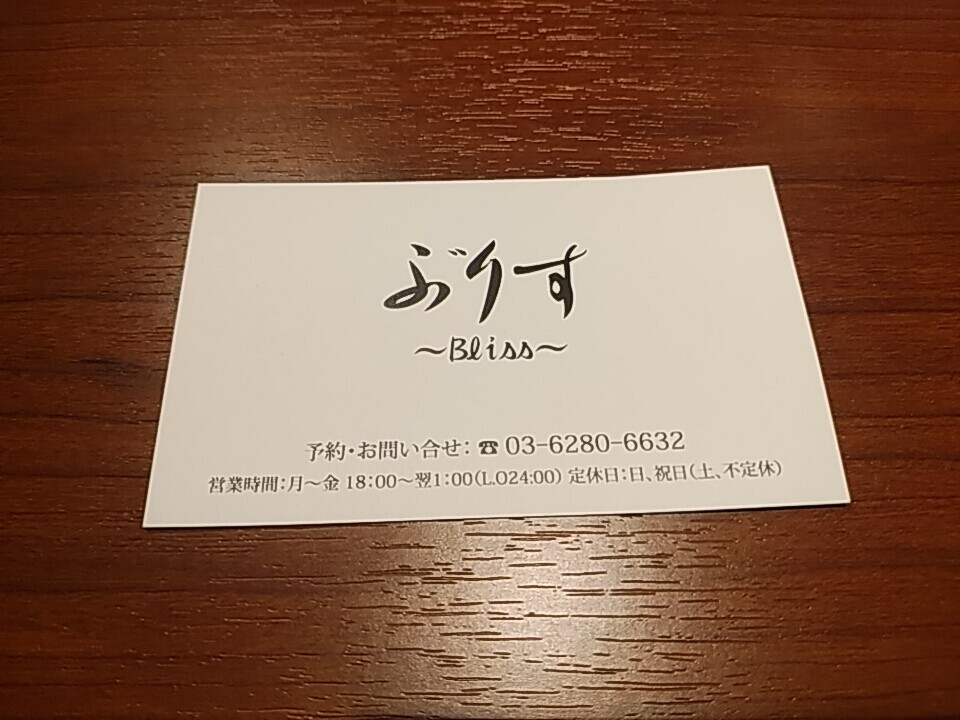 ちなみに「ぶりす(Bliss)」ってのは「この上ない」的な意味らしい。なんで平仮名にしたっかっていうと、ブリス/Bliss では他に店が多数あったとのこと。