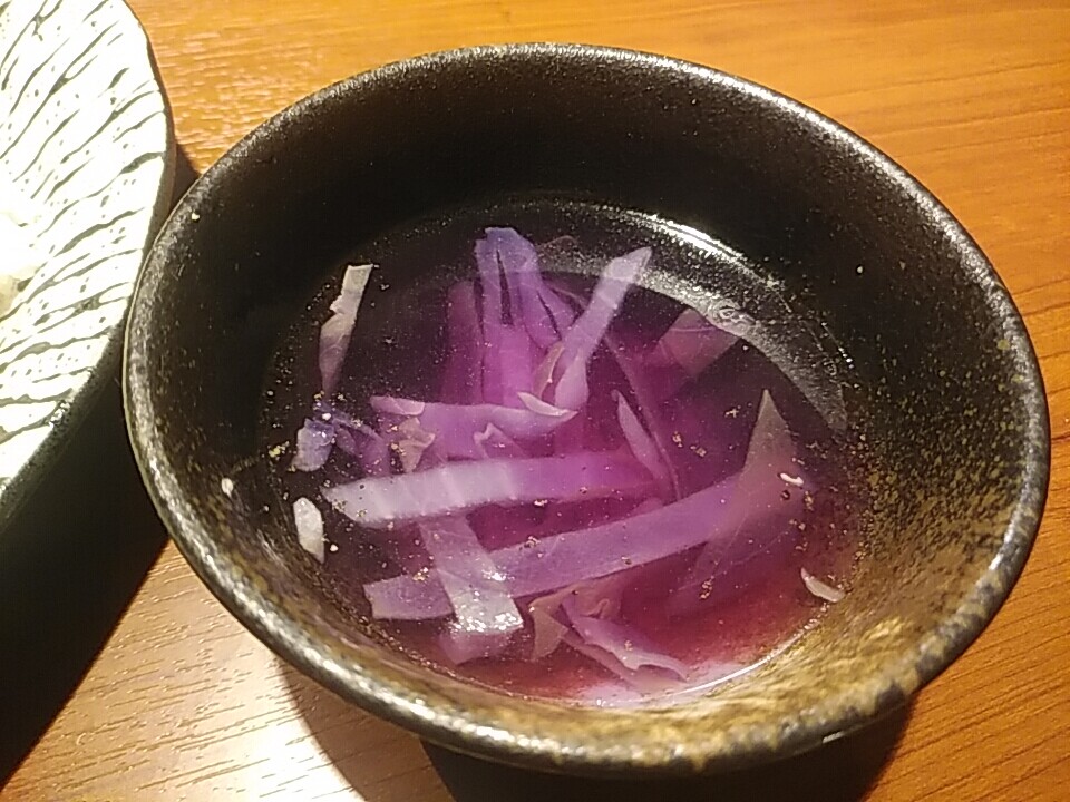 こんときのスープは赤キャベツ。これまたちゃんとしてて美味しい。