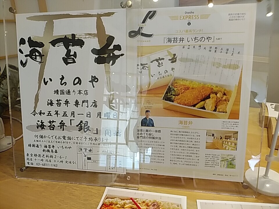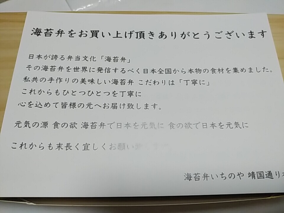 新橋 高級海苔弁「いちのや」のテイクアウトでございます。