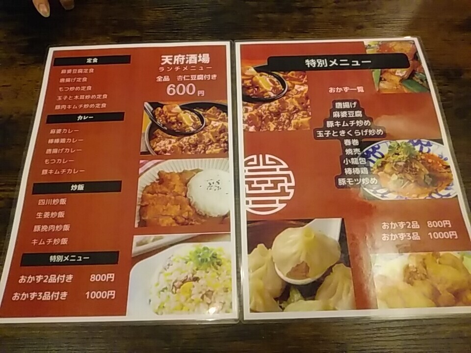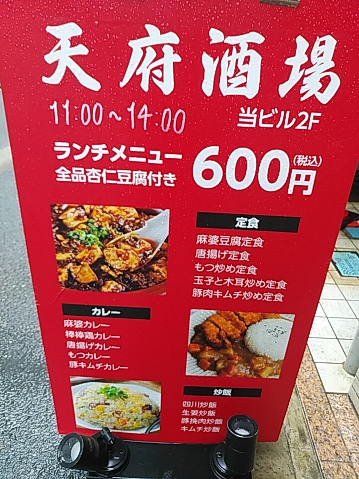すばらしく良かった鹿児島黒豚とんかつ店 ほり壱(ほりいち)の近く、600円ランチが気になってたので入店。天府酒場(てんふさかば)。割と新しめな中華や。
