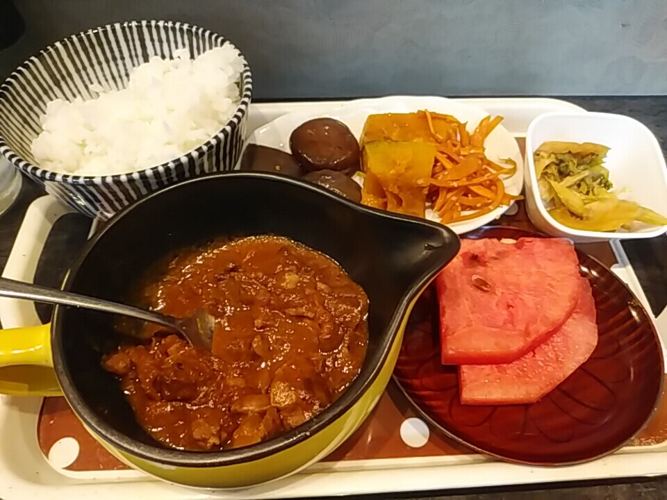 スイカの皮が剥かれており女将さんの優しさを感じる