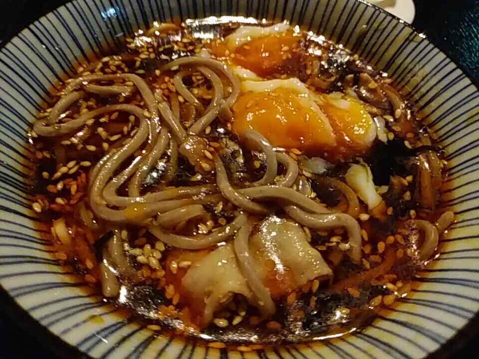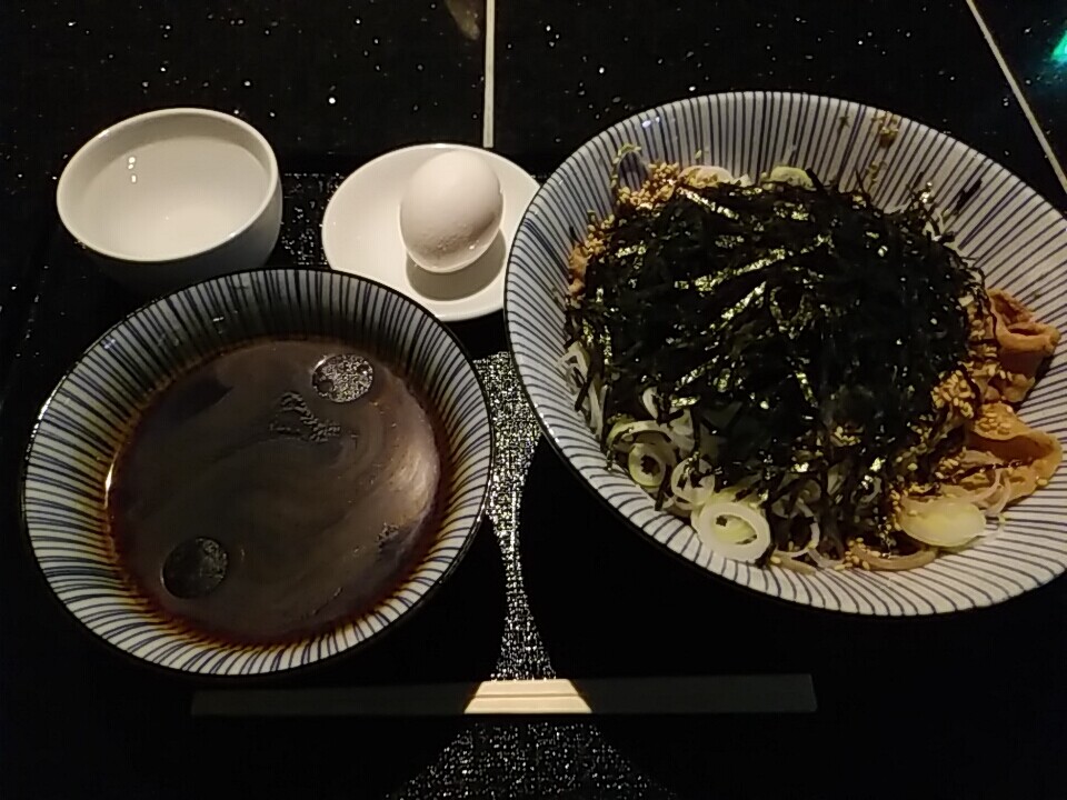 呼び込みのおねーさんにオススメされたのは「冷やし肉そば+半熟たまご」