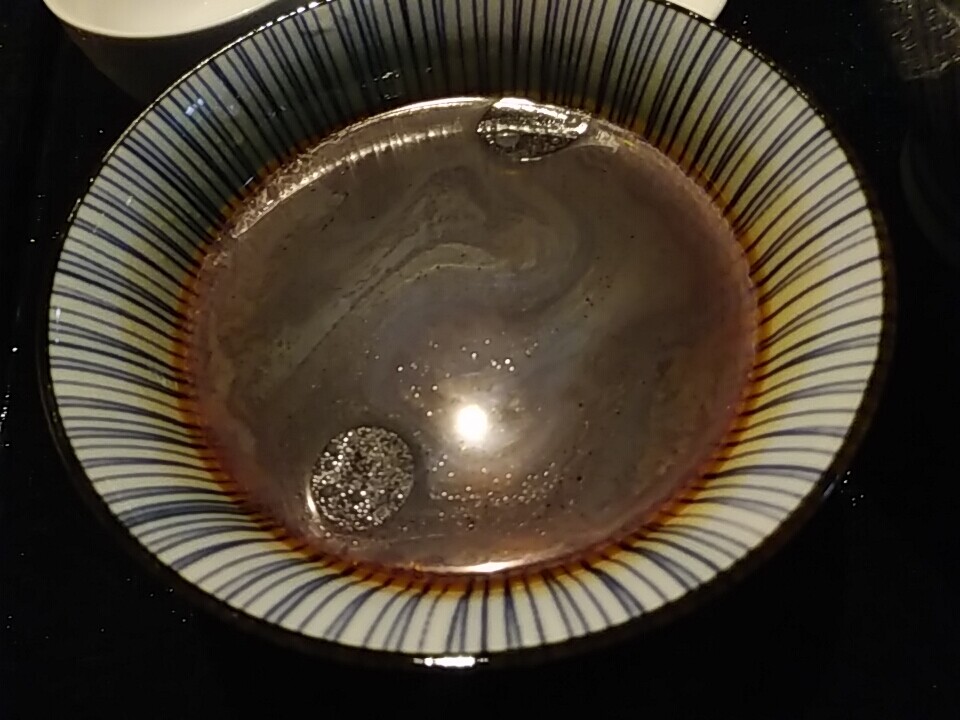 汁は辣油入り、結構辛く甘みが強くてしょっぱい。