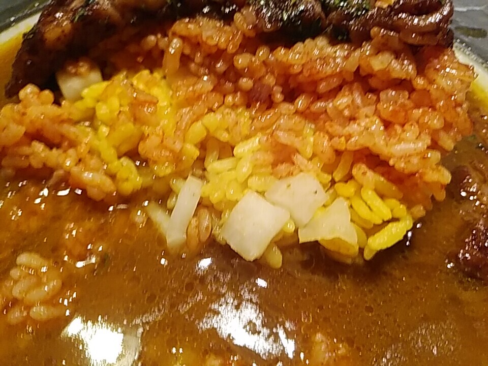 下面はターメリックライスで、境に大根ピクルスが居る!