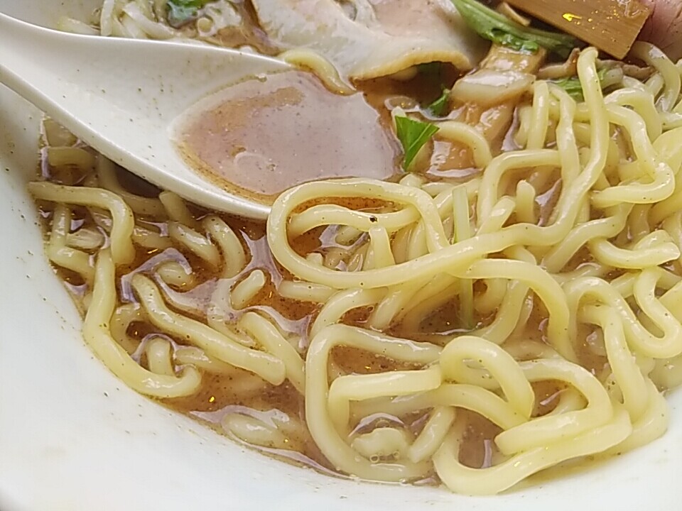 スープは濃厚ながらも やり過ぎてない魚介の旨味。麺やいし川に近しい感じ。