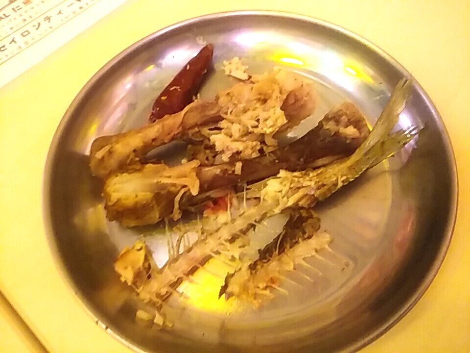 プラスの魚フライはアジの素揚げ。頭は香ばしく食べれる。