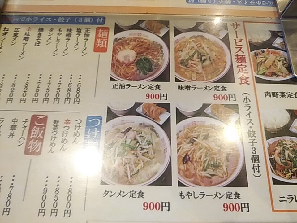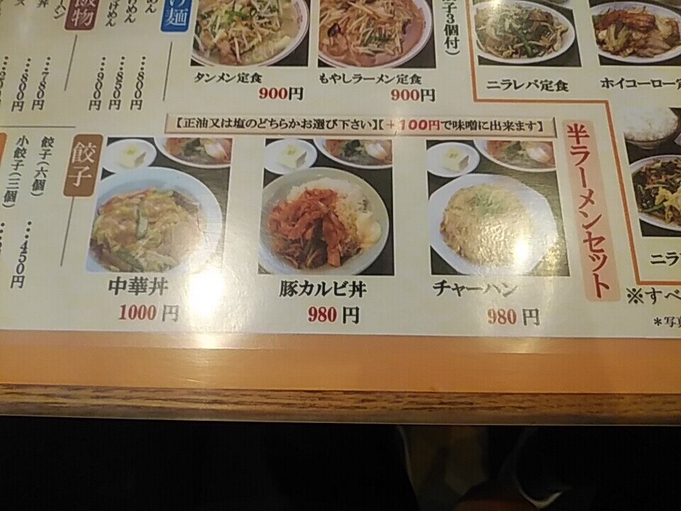 注文の品:タンメン定食900円、半ラーメンセット---中華丼1000円、チャーハン980円+味噌チェンジ100円