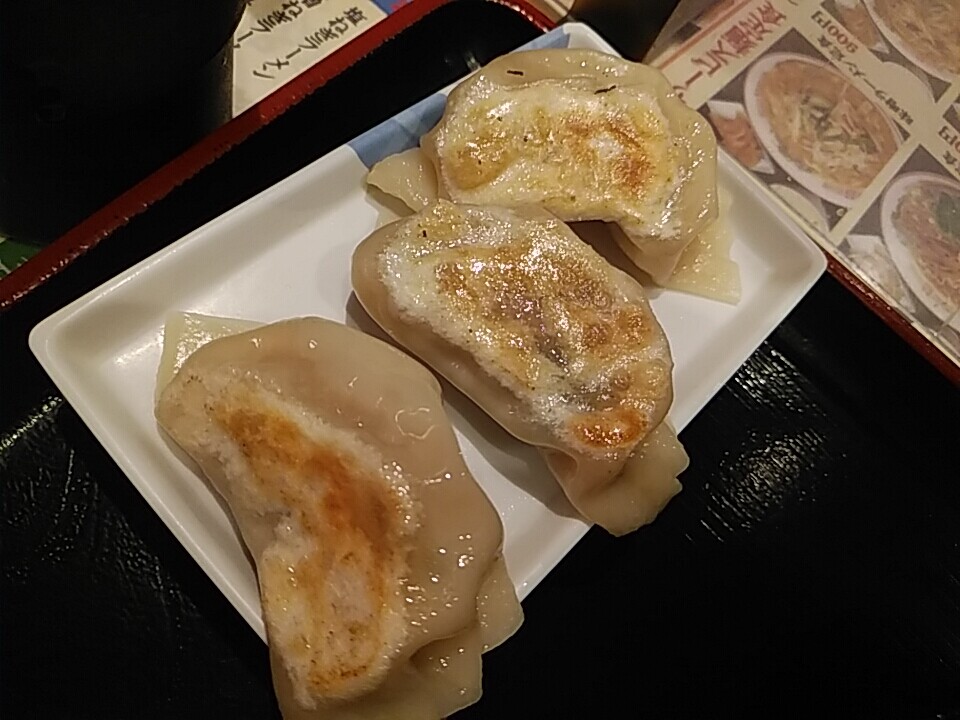 餃子は3個。小さめだが皮はもっちり。