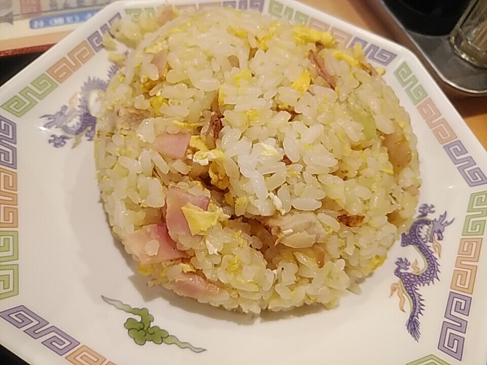 チャーハンはチャーシューとハム入り。香ばしくラード香る町中華のあの感じ。