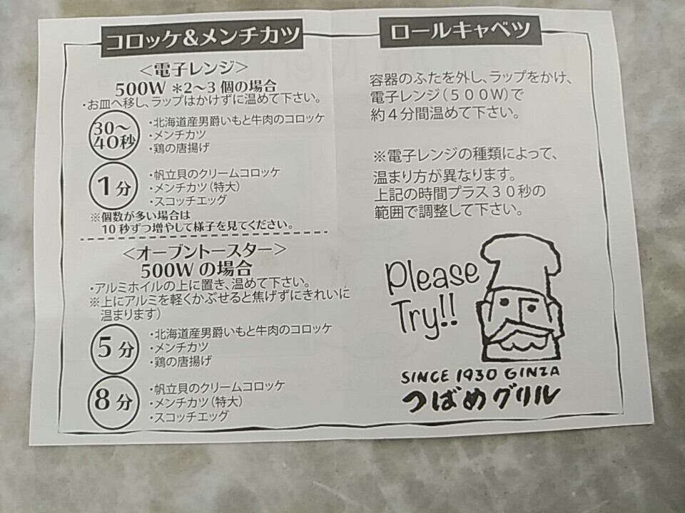 ちなみに裏面は「コロッケ&メンチカツ」と「ロールキャベツ」のレシピ。