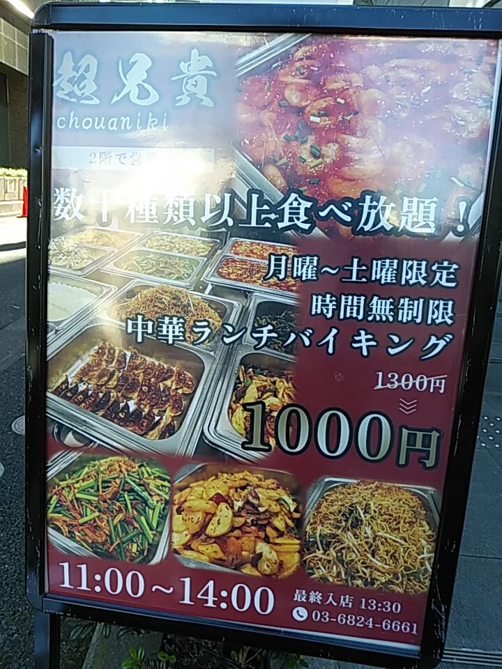新橋桜田公園の側、相鉄フレッサイン新橋烏森口の2F「超兄貴」のランチ中華バイキングでございます。