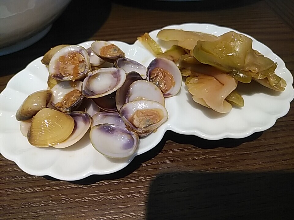 シジミ醤油漬けと選べる漬物(キムチ、高菜、ザーサイ)、ザーサイにした。