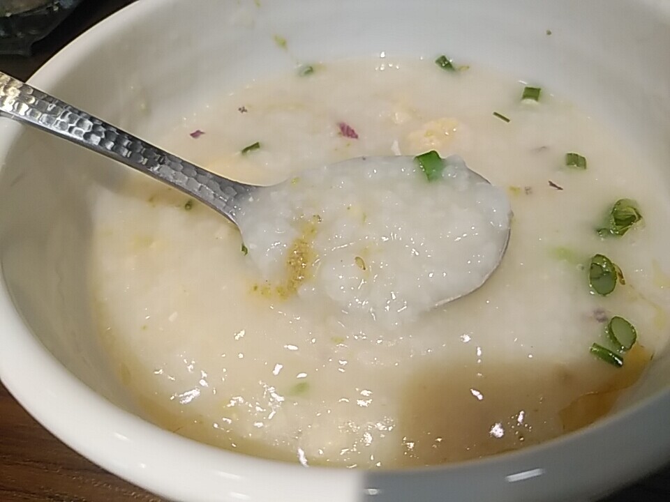 貝出汁お粥 美味かったな〜。弱った体に染み渡った。