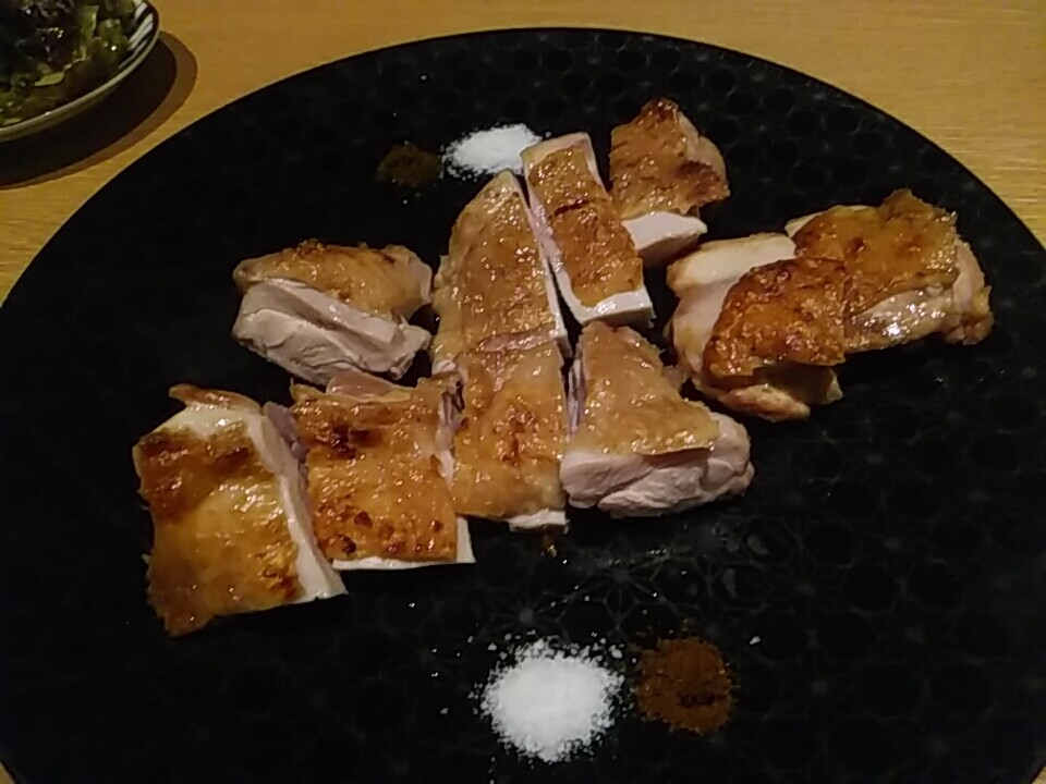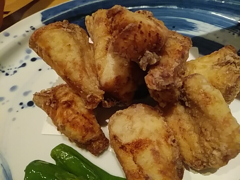 最初は表面のパリパリを嗜み、そのあとは出汁に付けて。