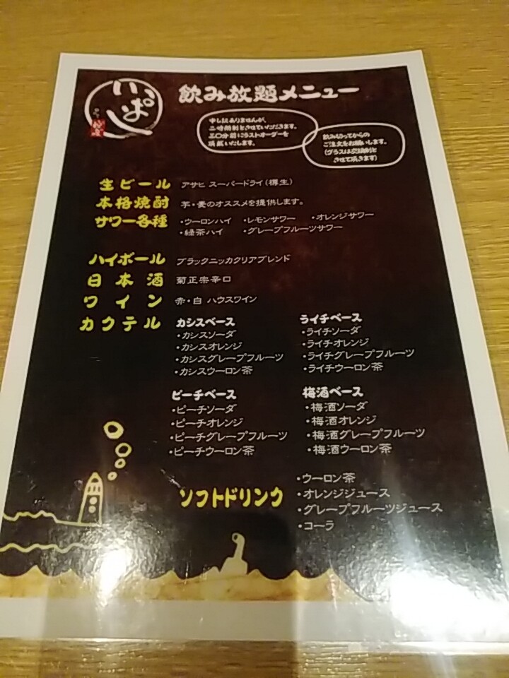 注文の品:いっぱし特製 『PUKUPUKUコース』2h飲み放題付き(料理は5人前です)