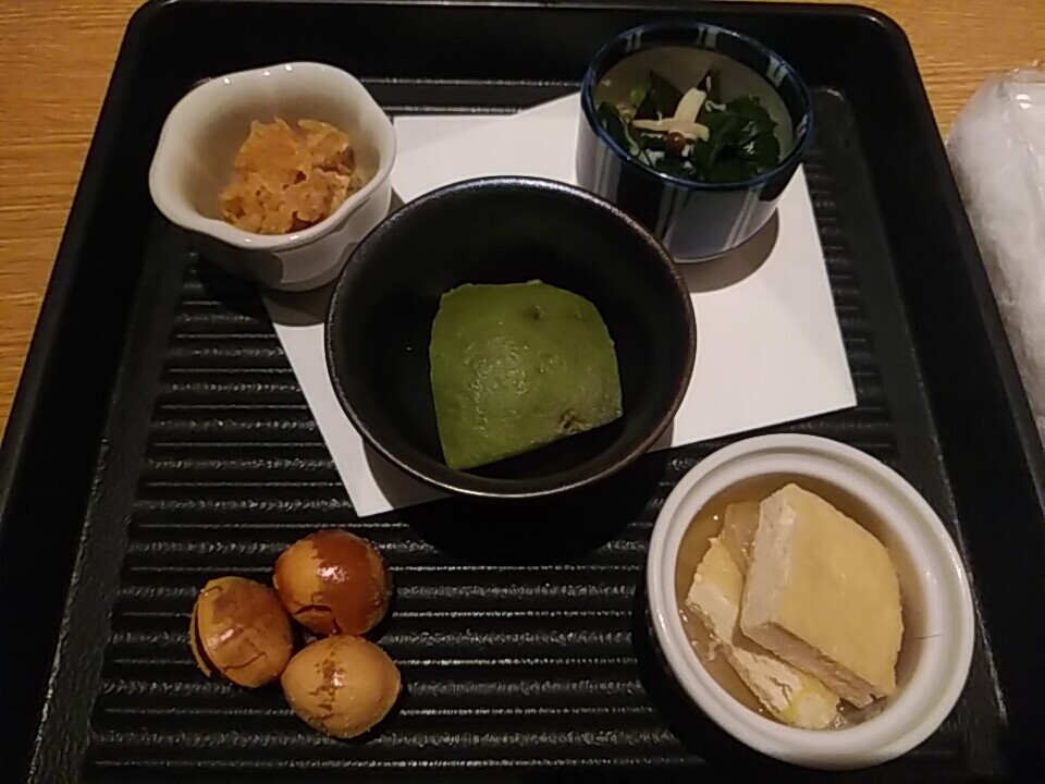 左上はスッポンのおから、緑はアボカドの出汁醤油漬け、その他もろもろすべて美味しい。