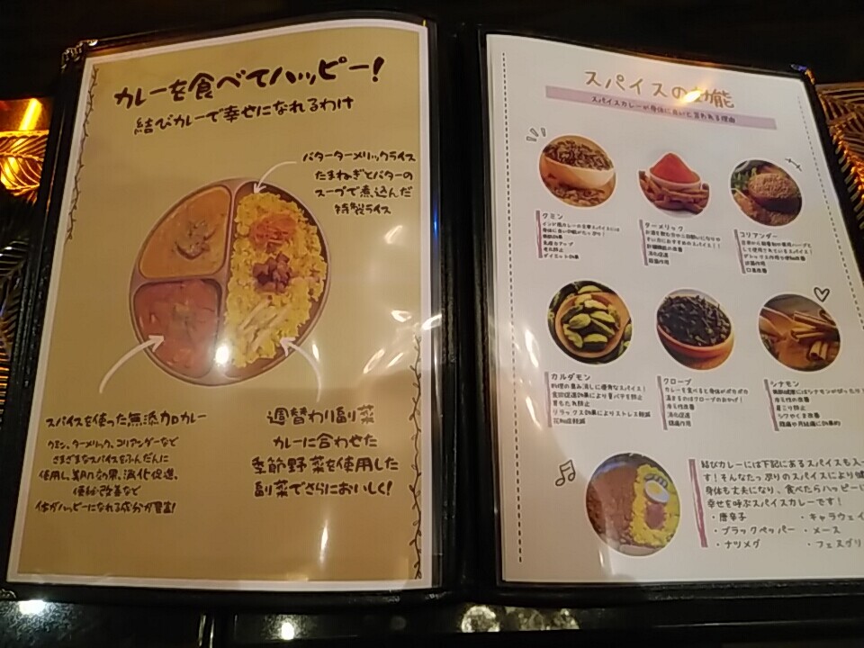 ランチメニュー、スパイスの拘り効能等。