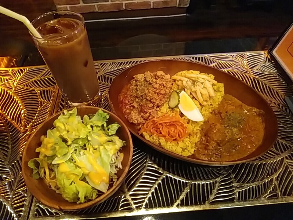 注文の品:ランチ結びカレーBセット カレー2種チョイス(サラダ、ドリンク)