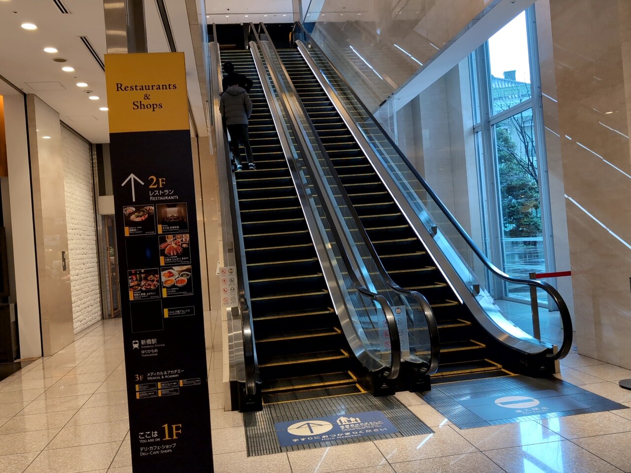 汐留シティーセンター1Fのエレベータを登る。
