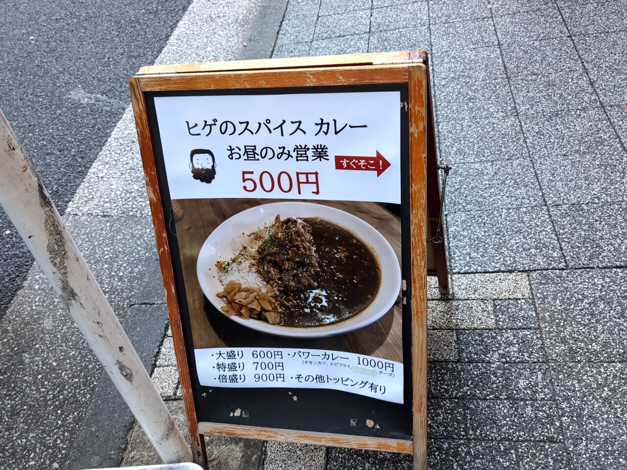 1か月ぐらい前からかな、カレー500円の看板が出ていた。