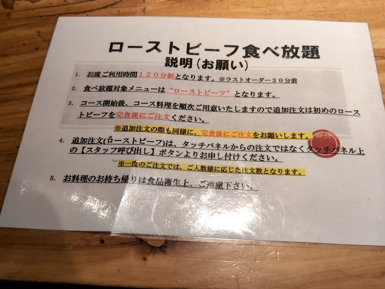 ■ ローストビーフ食べ放題は「スタッフ呼び出し」で