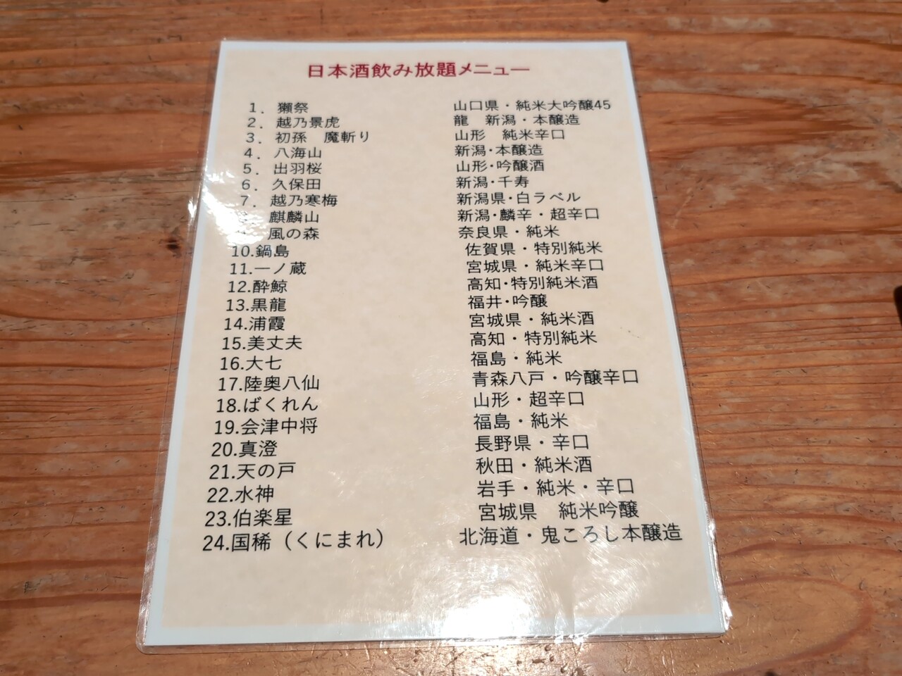 注文の品:獺祭、鍋島、風の森など日本酒24種類飲み放題3,300円