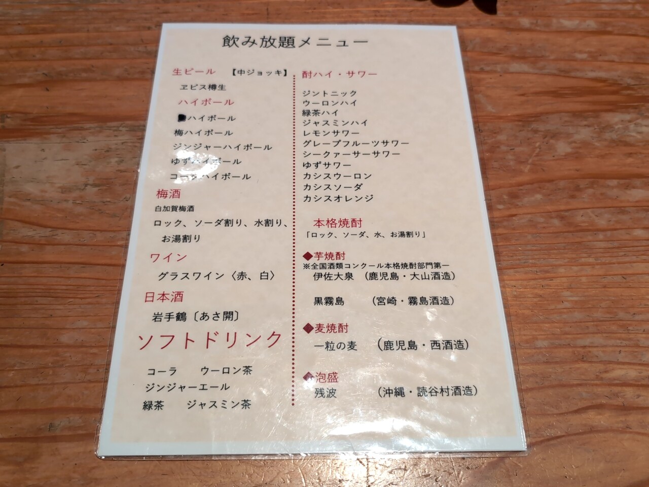 ■ 飲み放題のメニュー