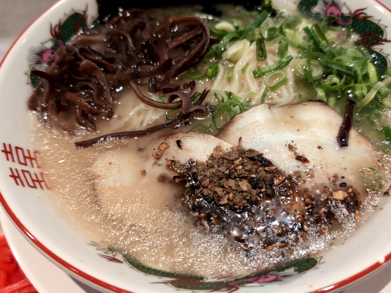 キクラゲたっぷりで、焦がしニンニクが乗る。