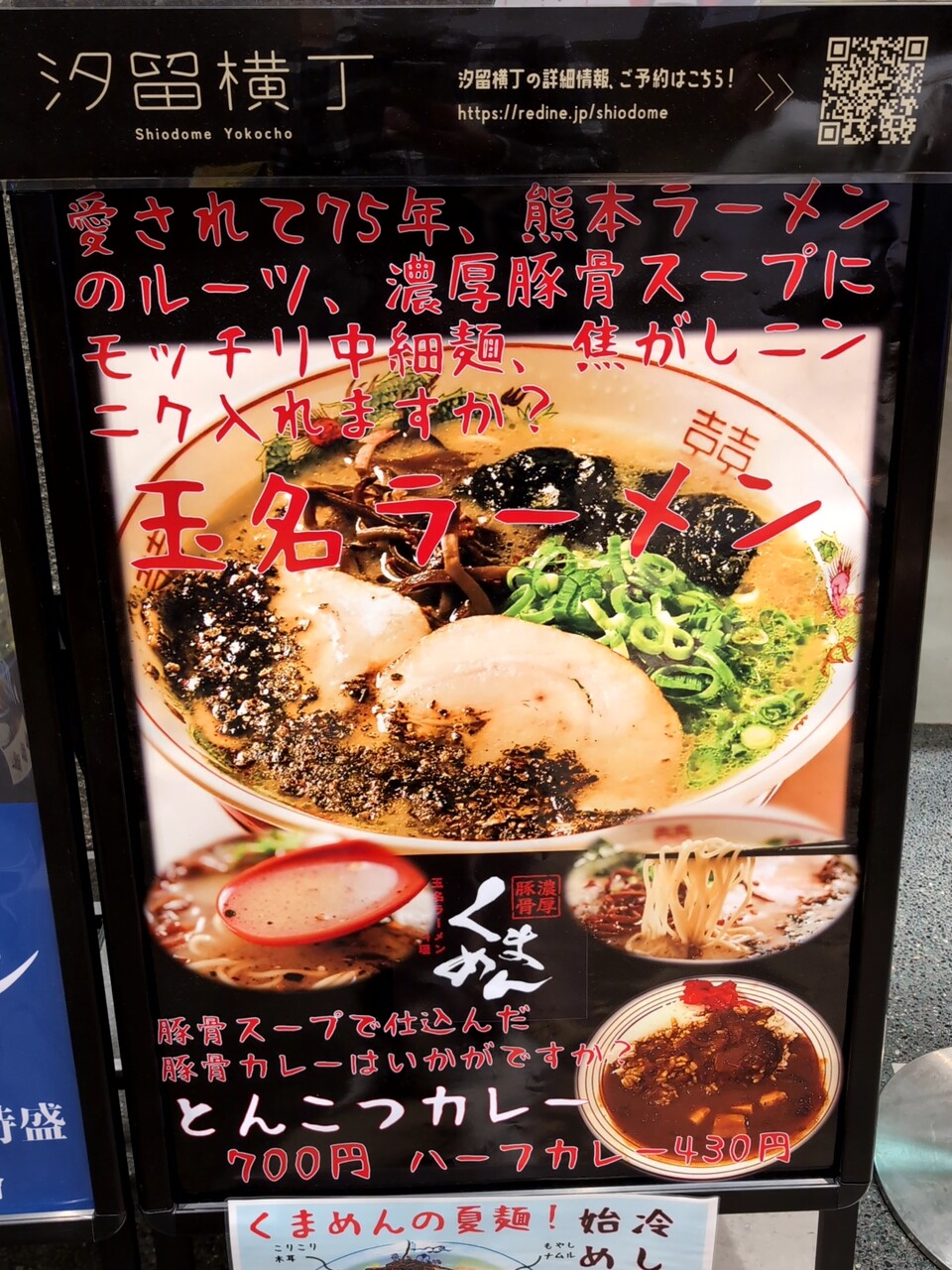 カレッタ汐留B2汐留横丁の熊本玉名ラーメン「くまめん」でございます。