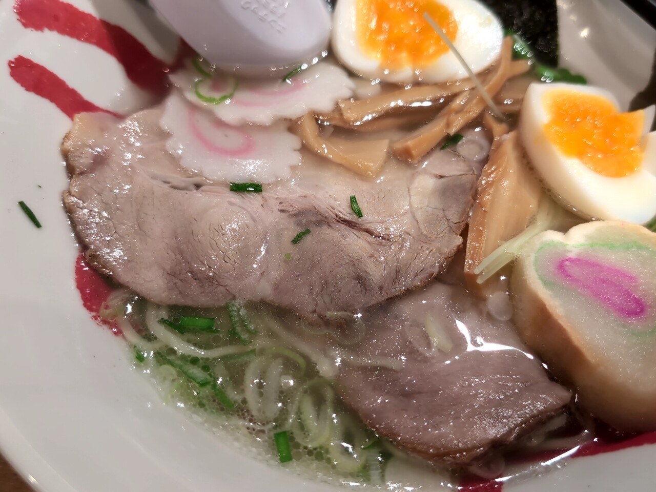 煮卵と麩、チャーシューが2枚入る。