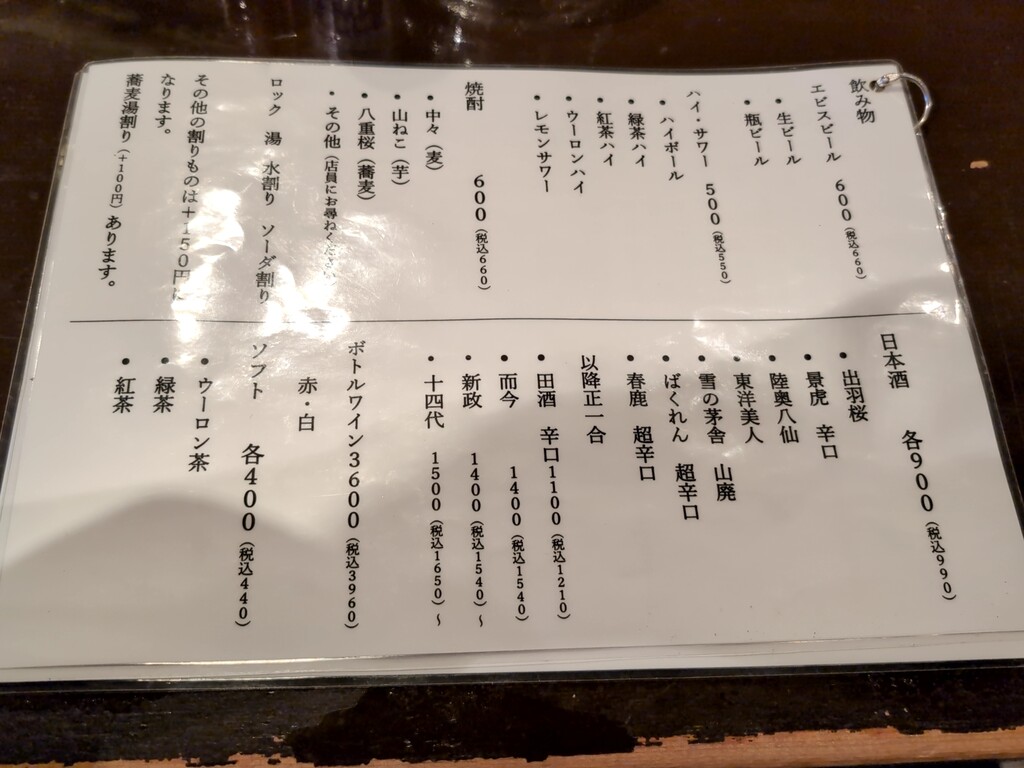 カウンター8程、奥にテーブル席2ぐらいのしっぽり店内。