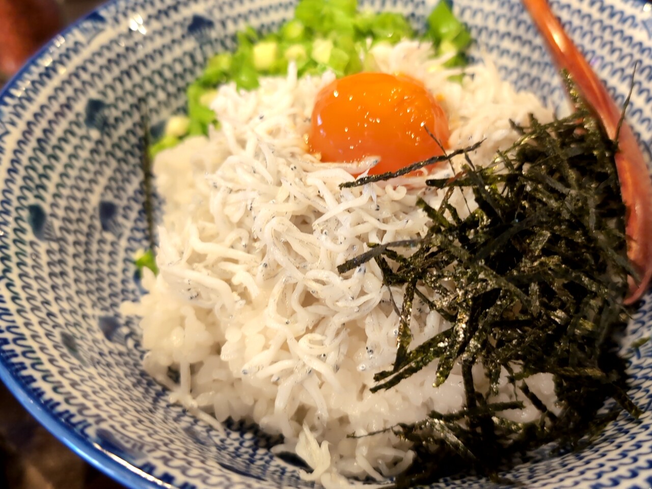 でー、しらすちりめん醤油が提供され、これがイイ!