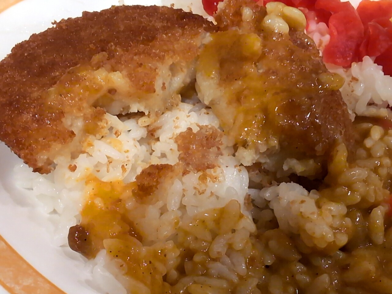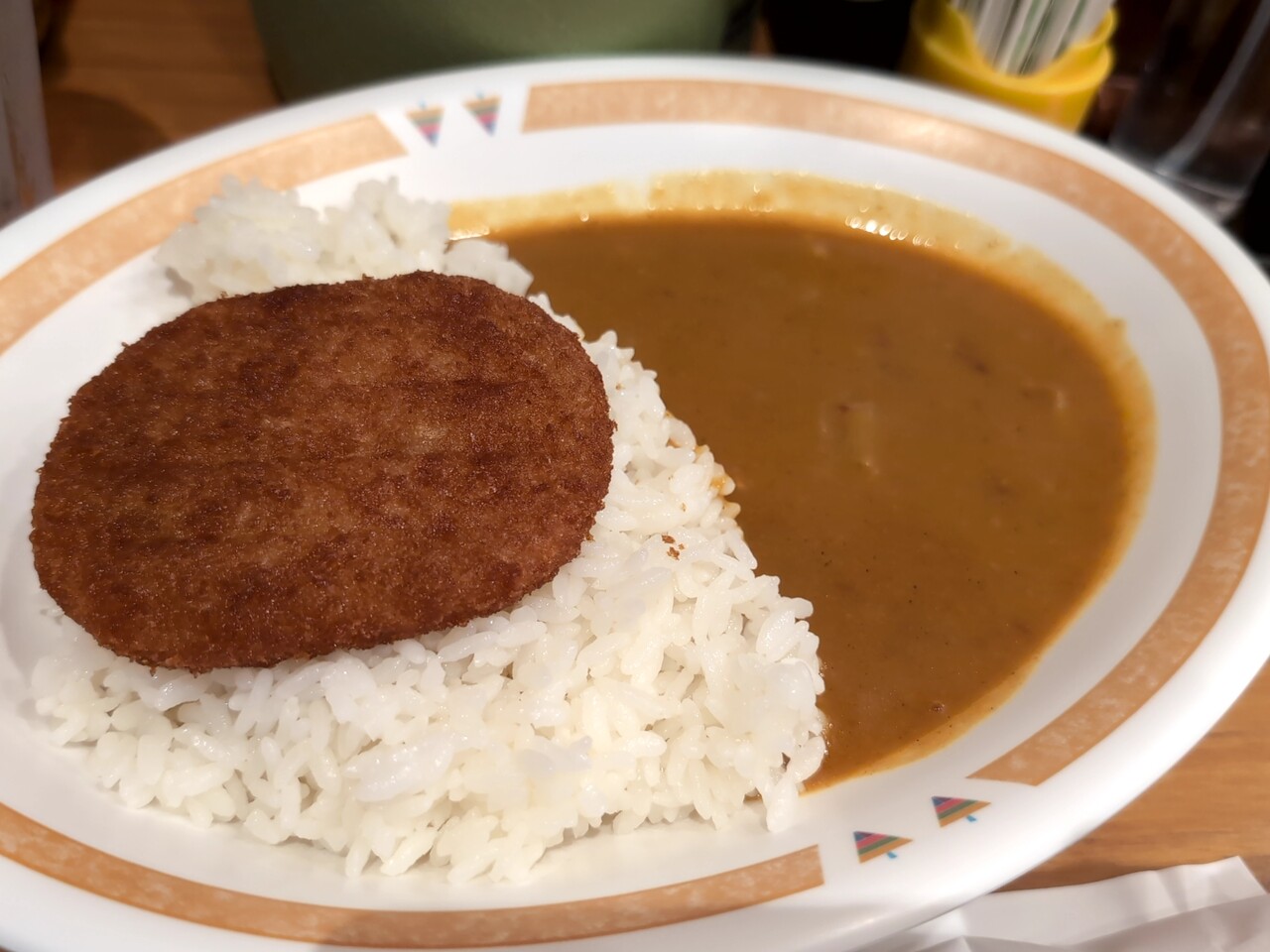 カレーはレトルト的なチープさは否めないが、ほんのり甘くボンカレーみたいな感じ。