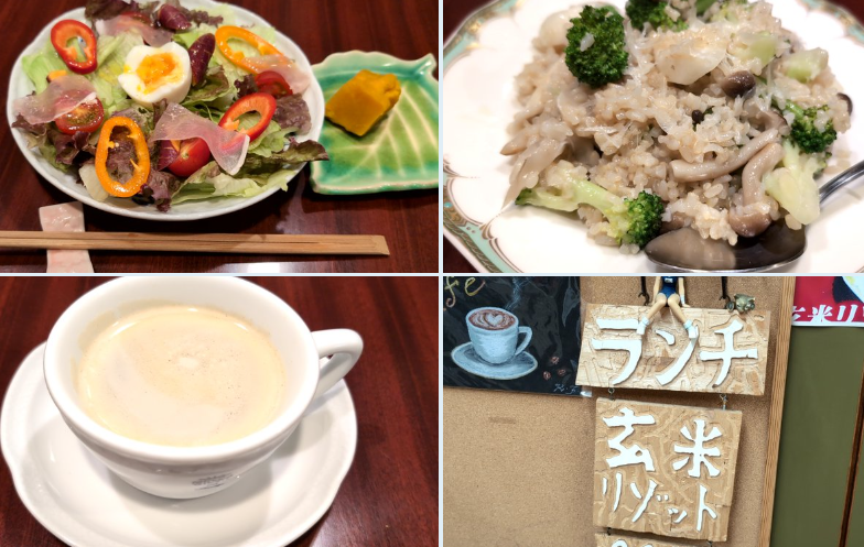 注文の品:玄米リゾット(サラダ、小鉢、スープ、コーヒー)