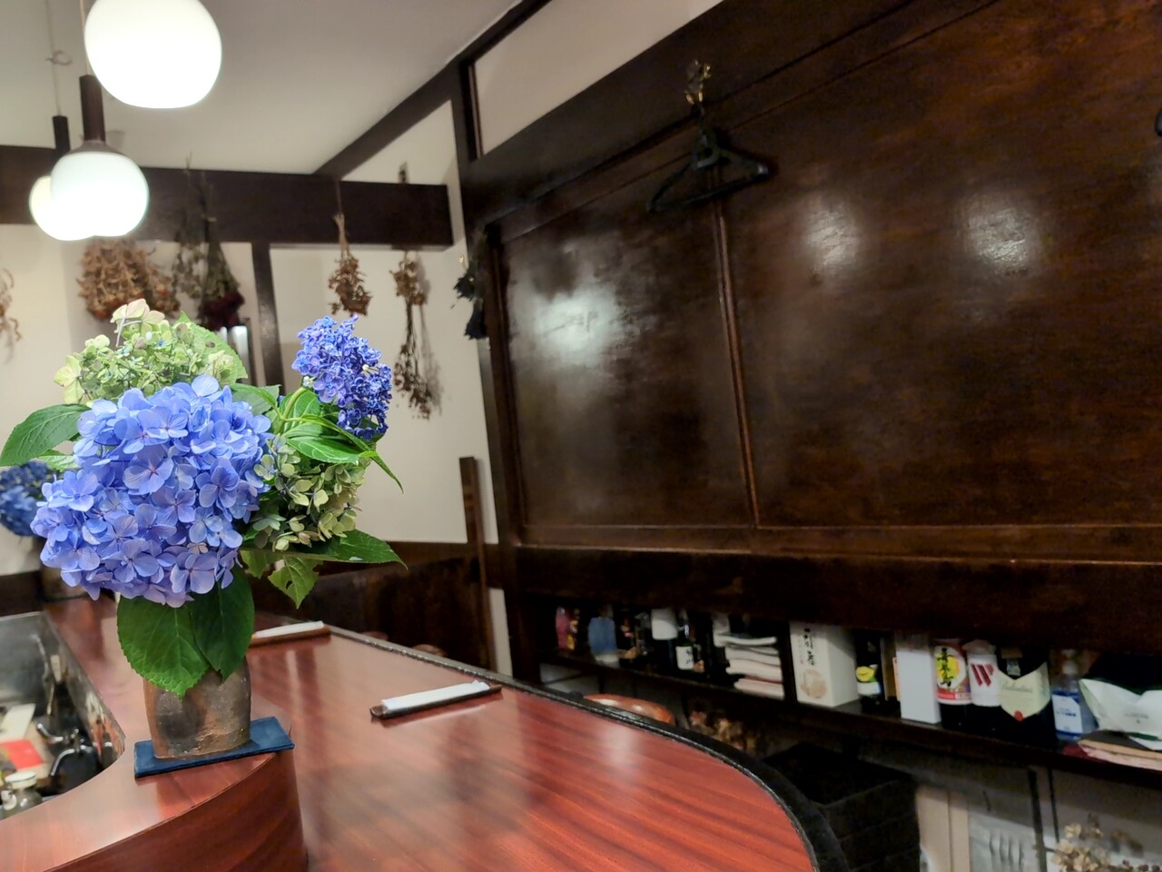 紫陽花が飾ってあり綺麗だった。