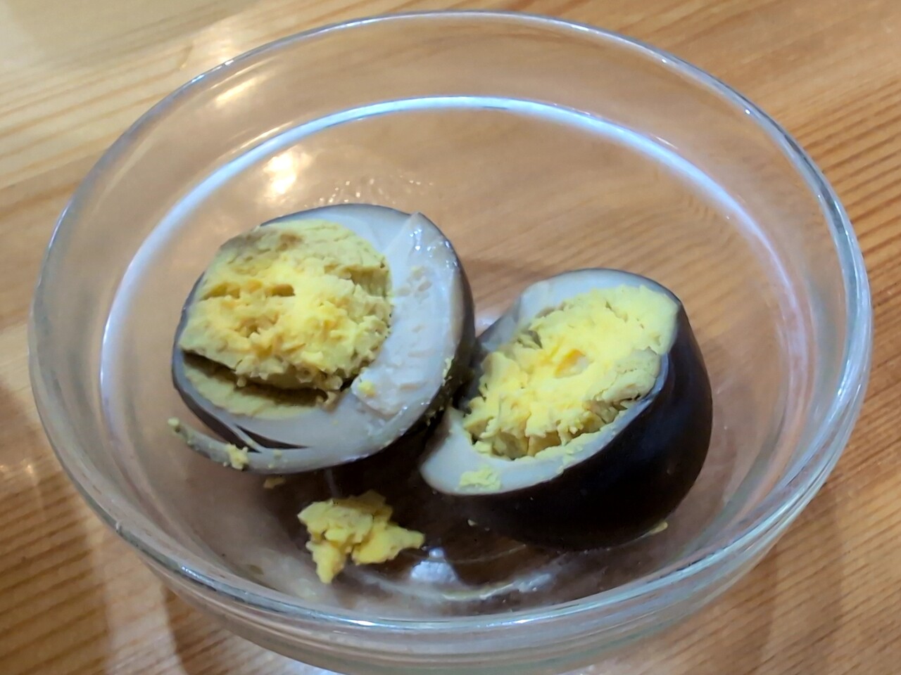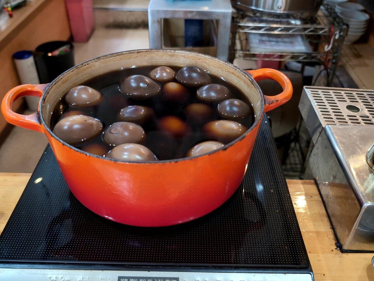 煮玉子は漆黒に煮込まれ 五香粉(ウーシャンフェン)的なあっち風味でいいね。