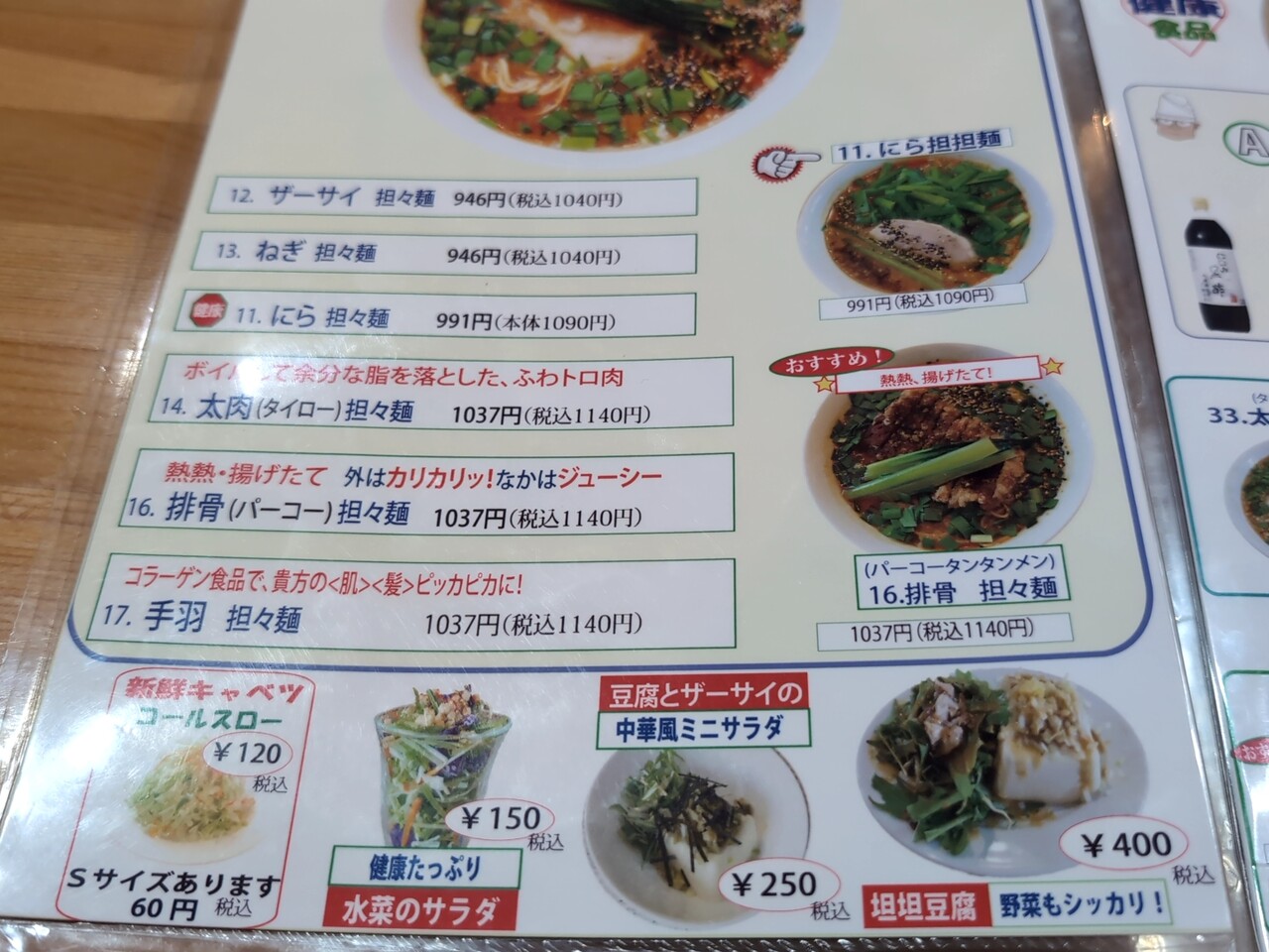 注文の品:排骨(パーコー)担々麺1140円 + 煮玉子100円
