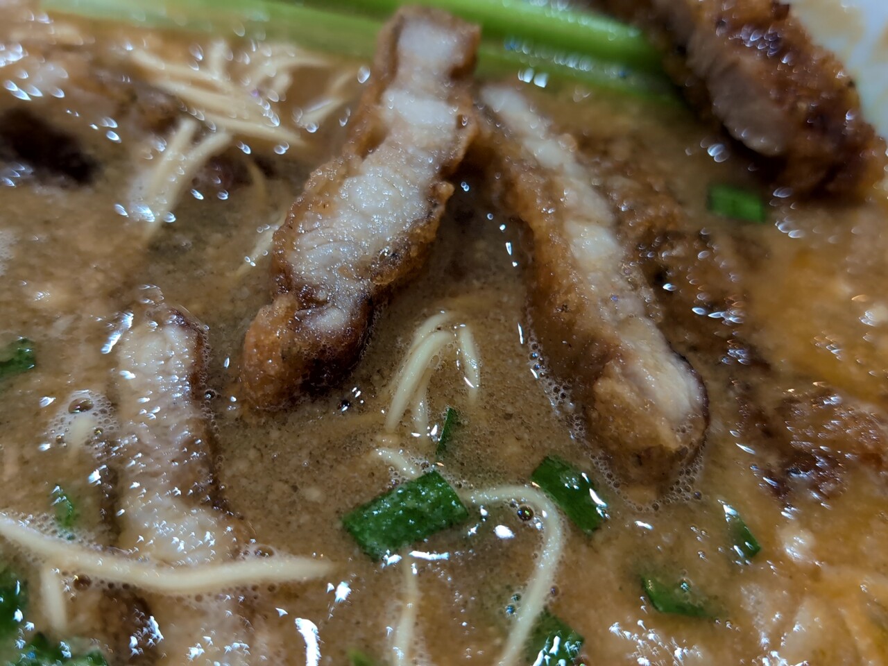 排骨(パーコー)はからっと揚がっており脂身良質で美味しい。