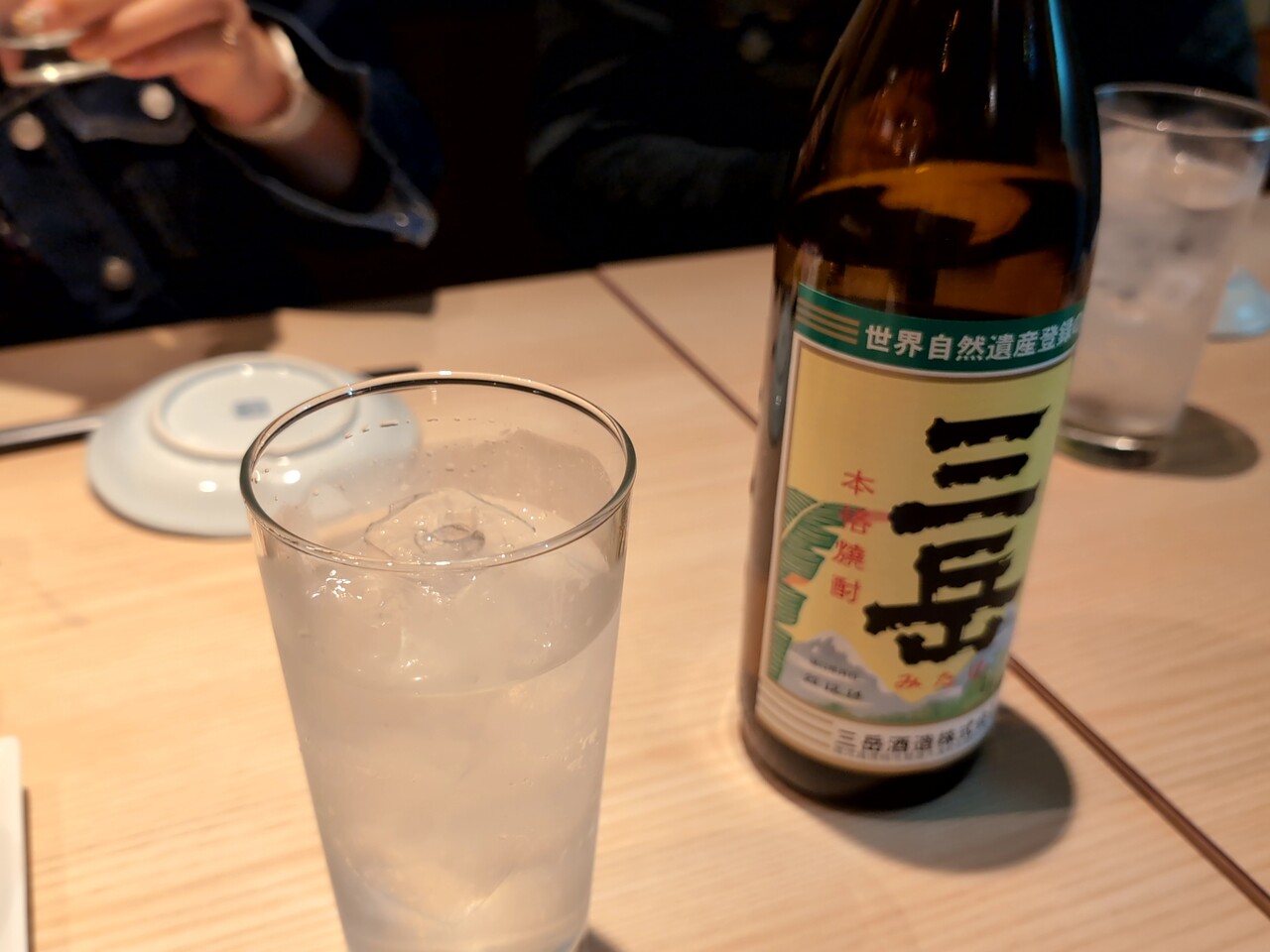 芋焼酎 三岳のボトルを入れ水割りでスタート。