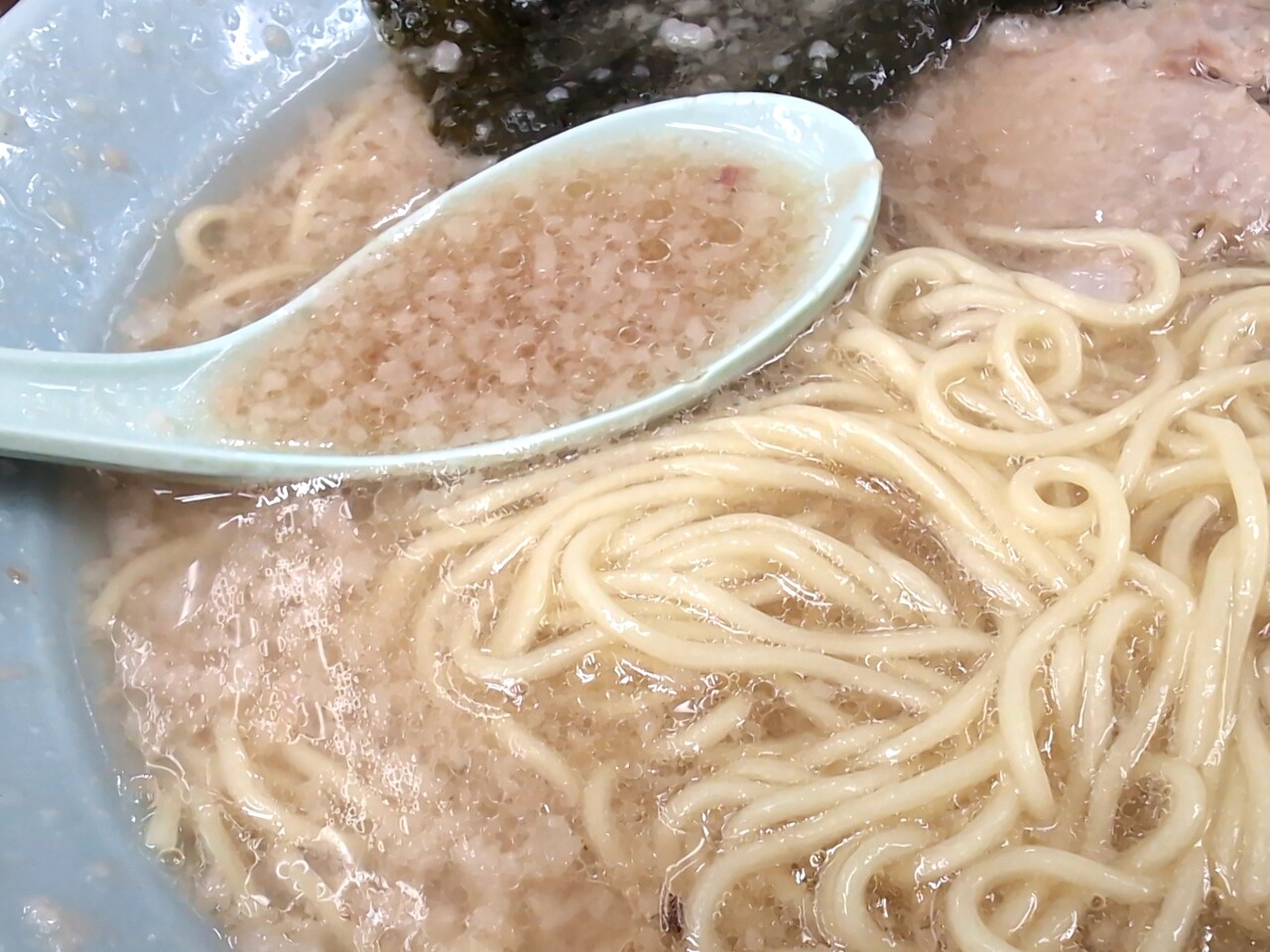 でもすするにつれ舌が慣れて(つーかバカになって)背脂の甘みで美味くなった。