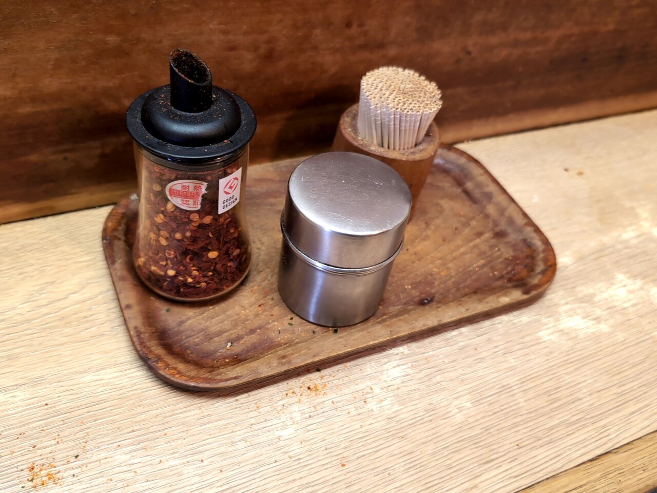 卓上に唐辛子があるのもいいね。