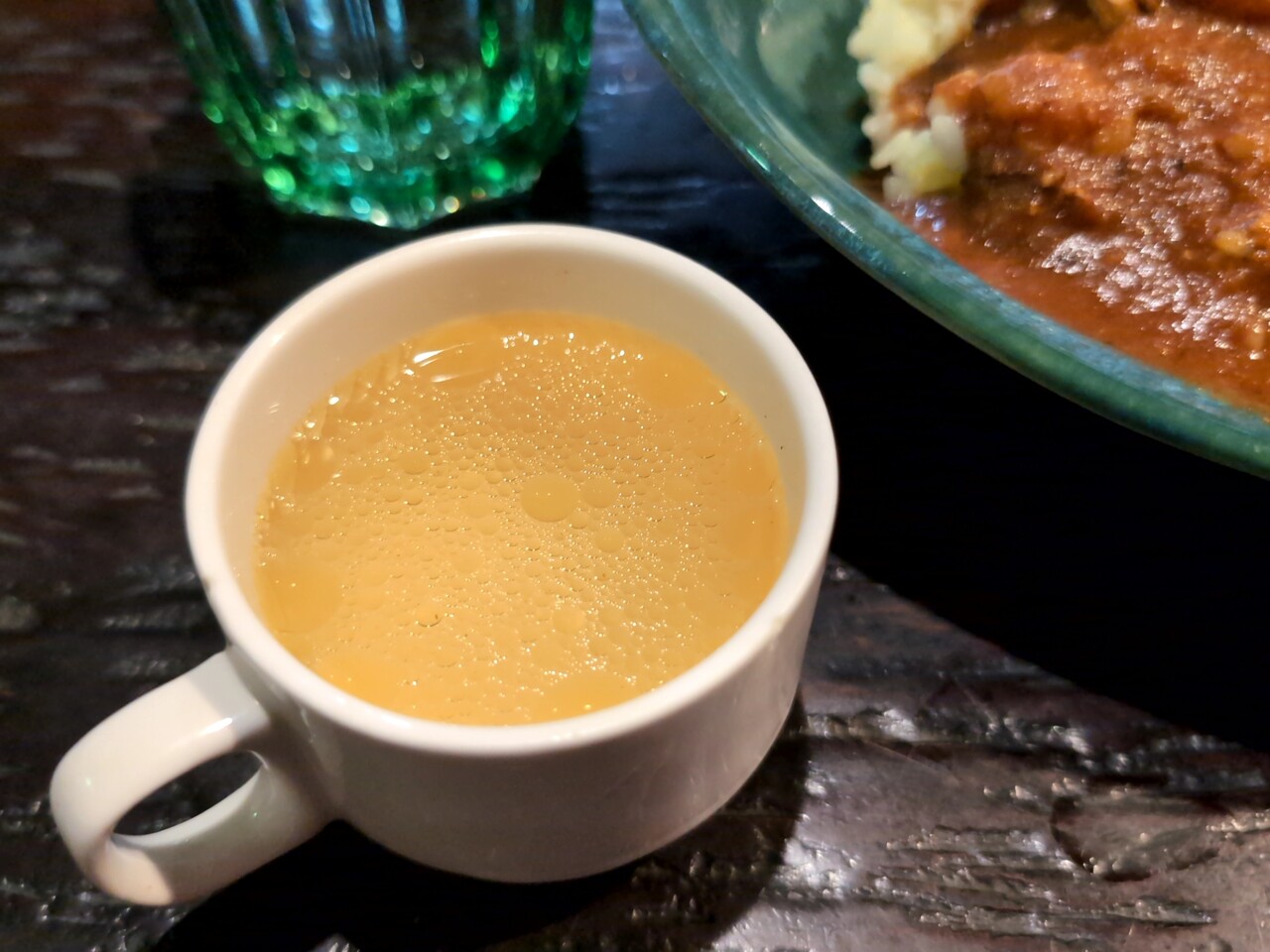 鶏のカレーで余った部位で出汁取ってるとのこと。