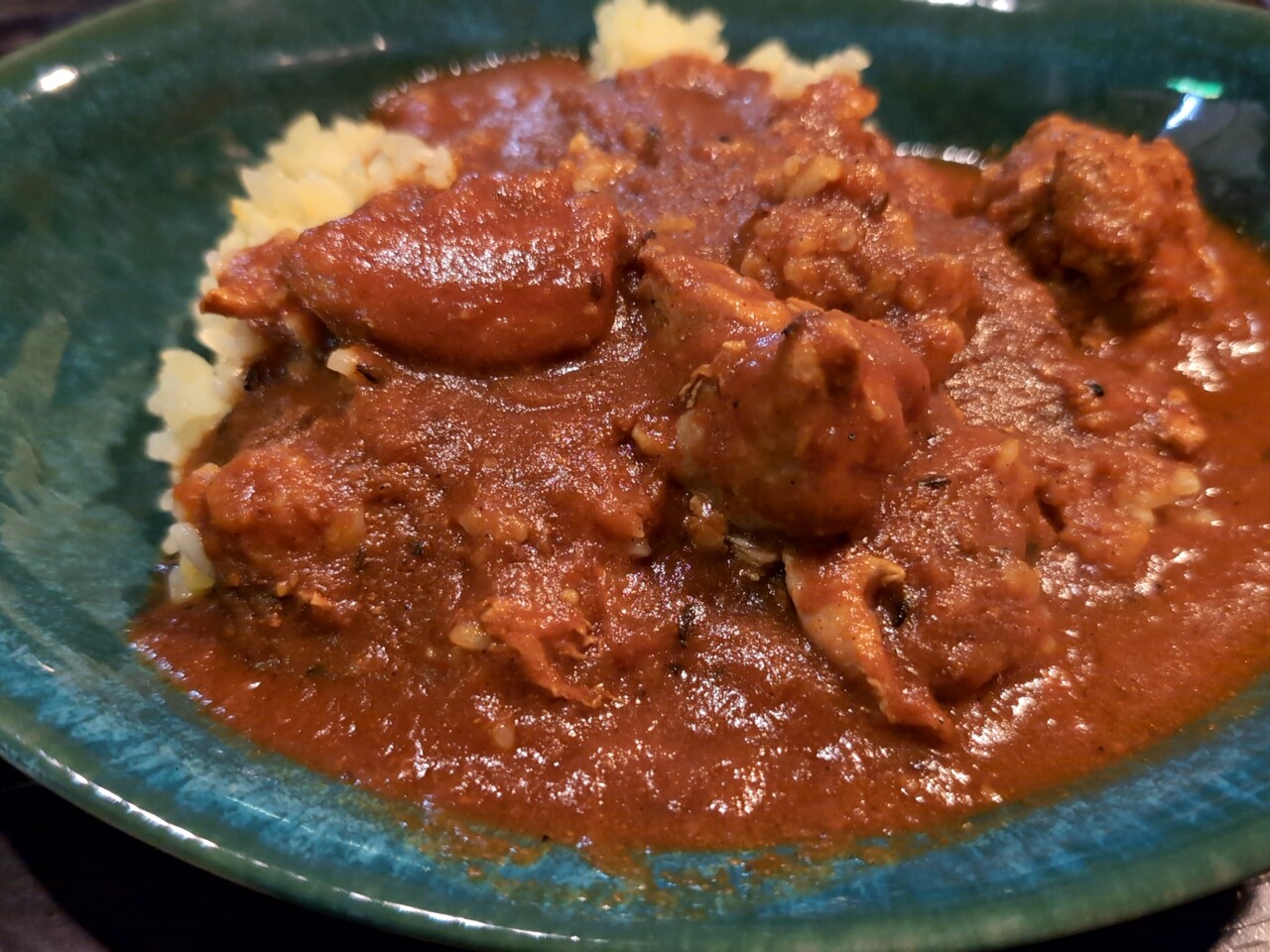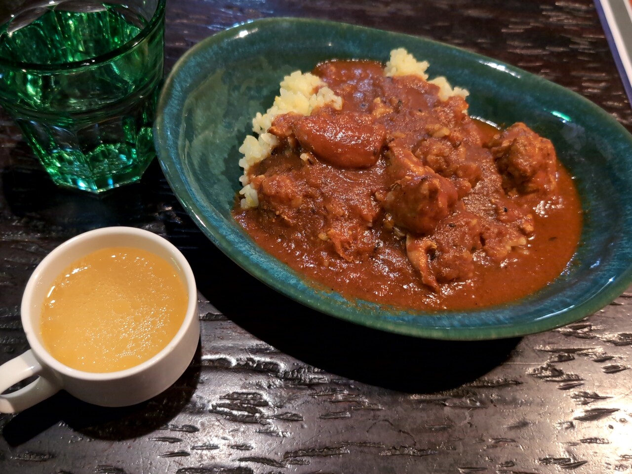 軟らかく煮込まれちょいと酸味があり、クミン等のスパイシーさで美味しいです。