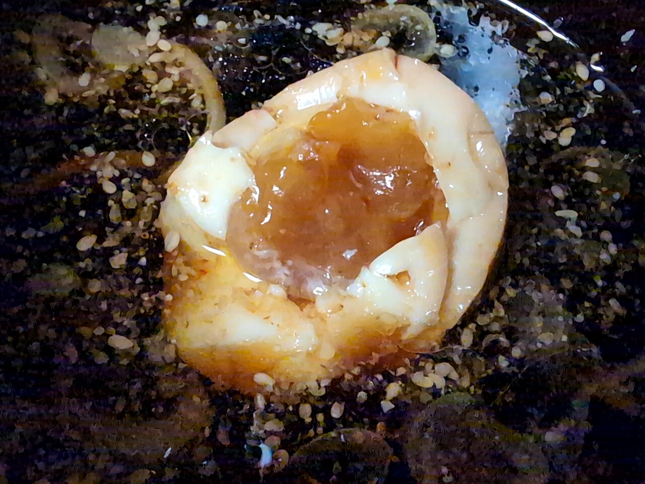 これがいい感じに半熟で美味い。