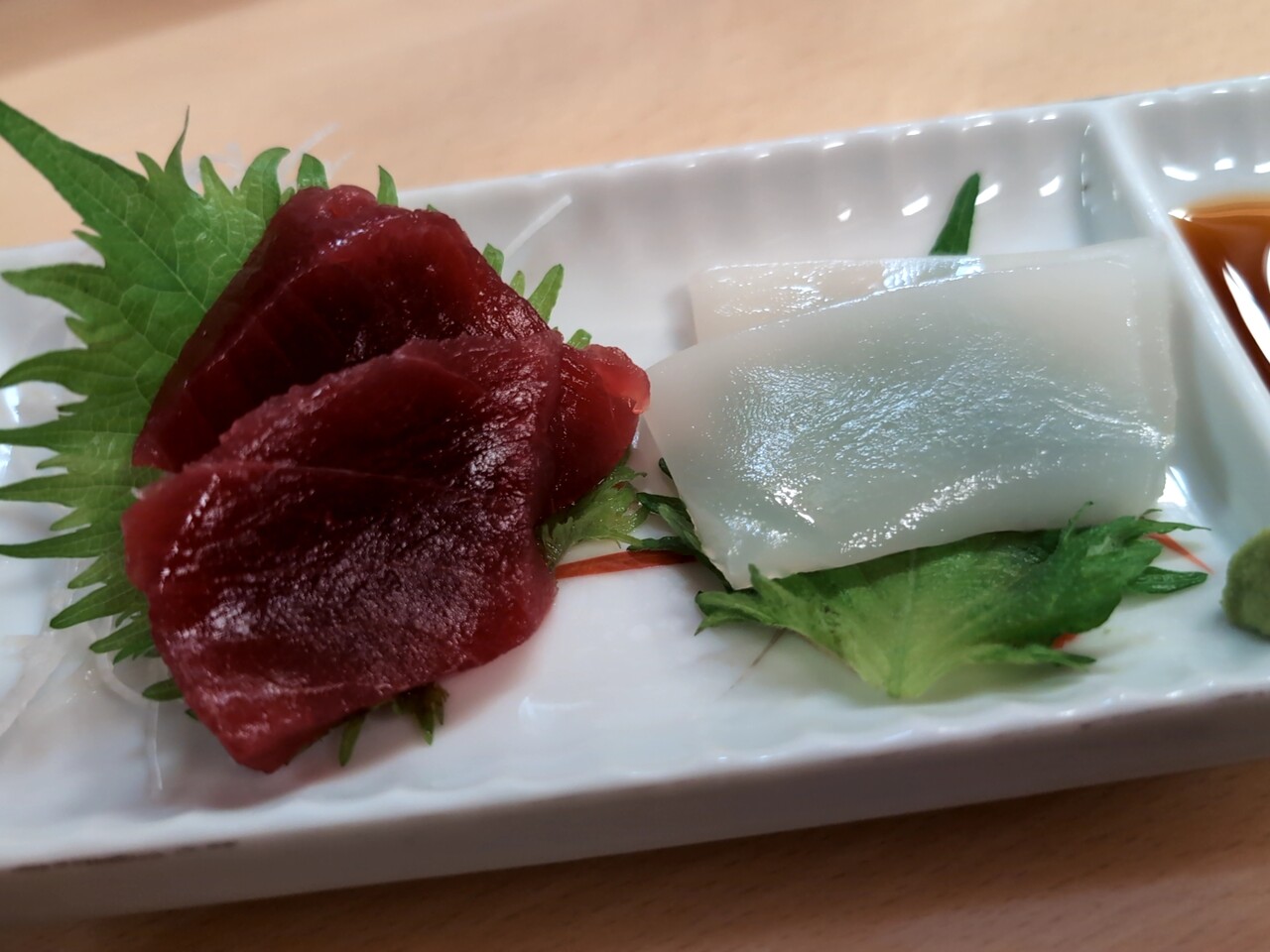 まぐろは赤身だが味濃くイカはねっとりしてて美味い!
