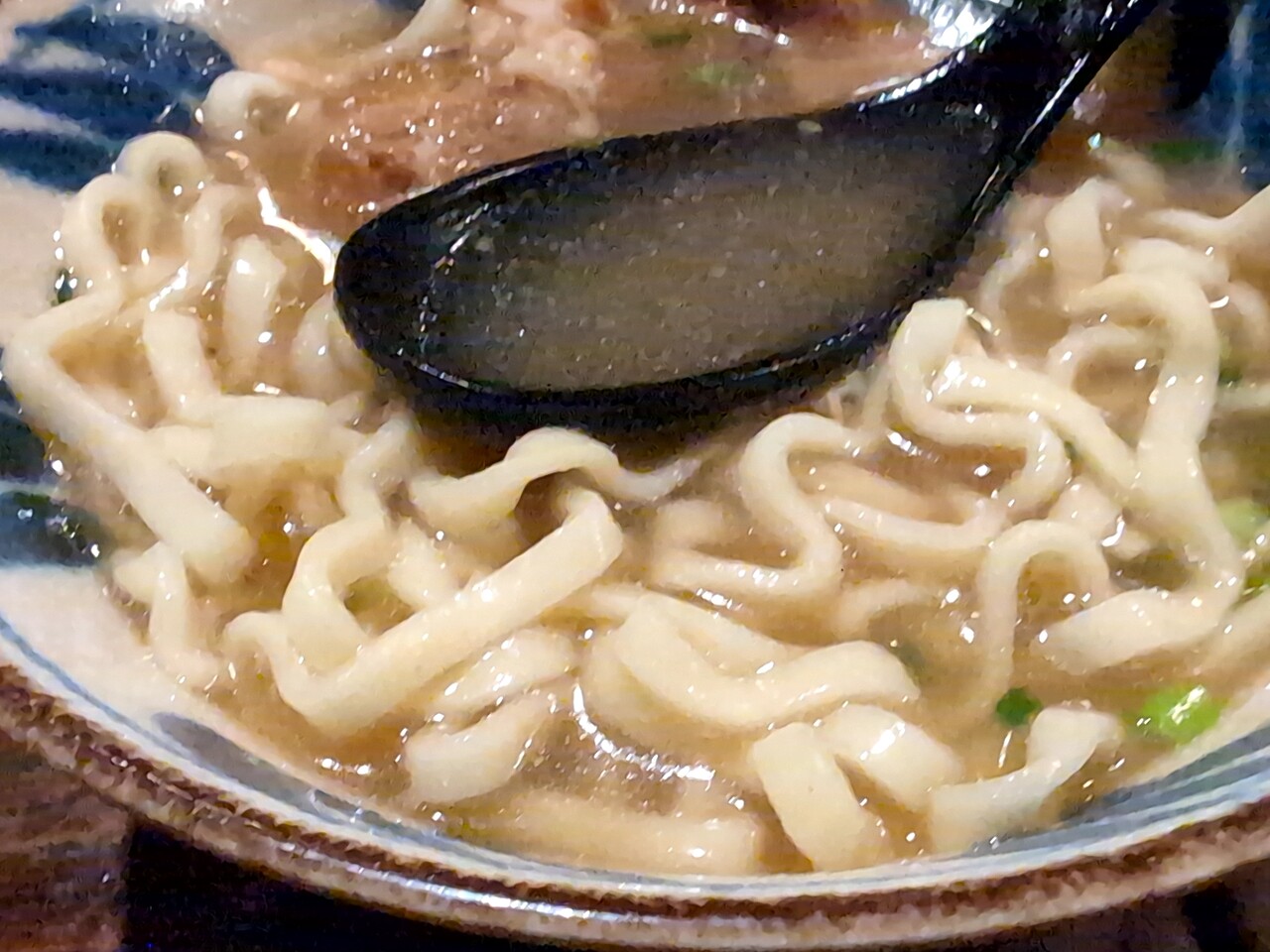 濃厚な鰹出汁にゴワゴワ麺。