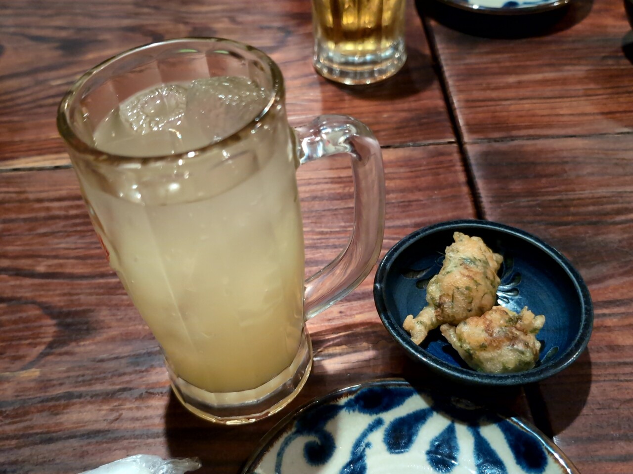 お通しは白身魚の磯部揚げみたいなのでこれまた美味しい。