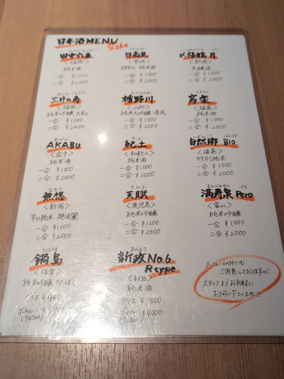 酒メニュー