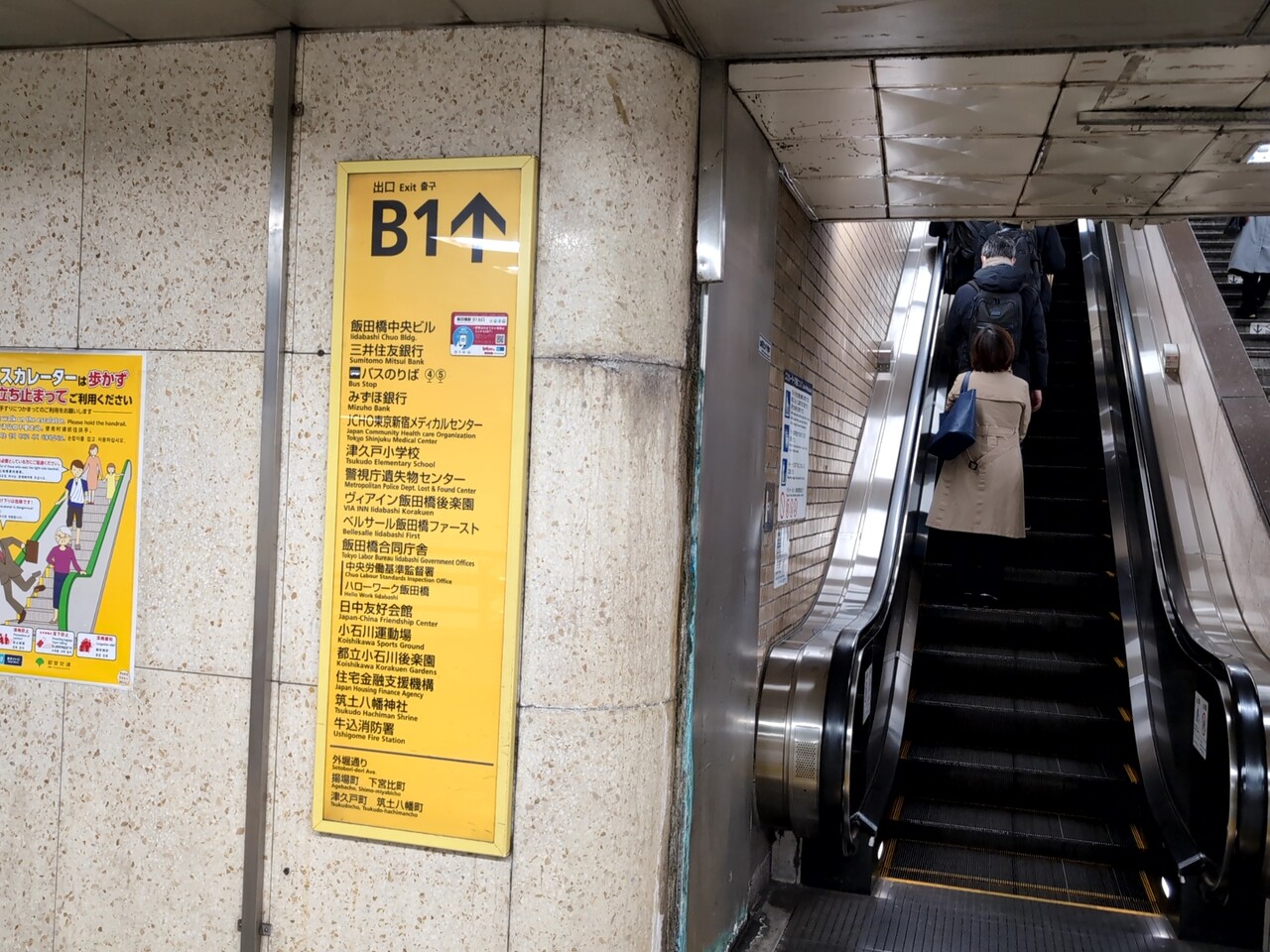 場所的には、飯田橋駅からB1出口を出て左に曲がり、横断歩道を渡り松屋を左に曲がるとあります。