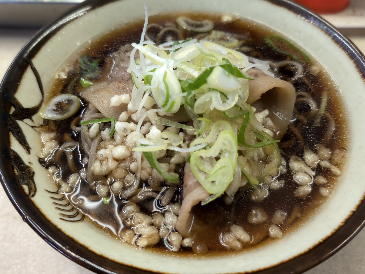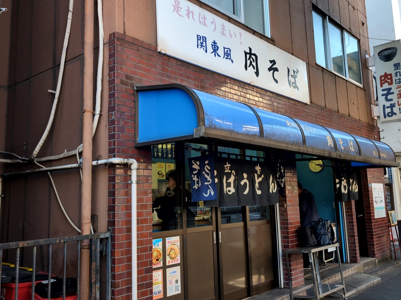 飯田橋立ち食いそばの老舗、豊しまの肉そばでございます。